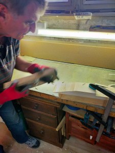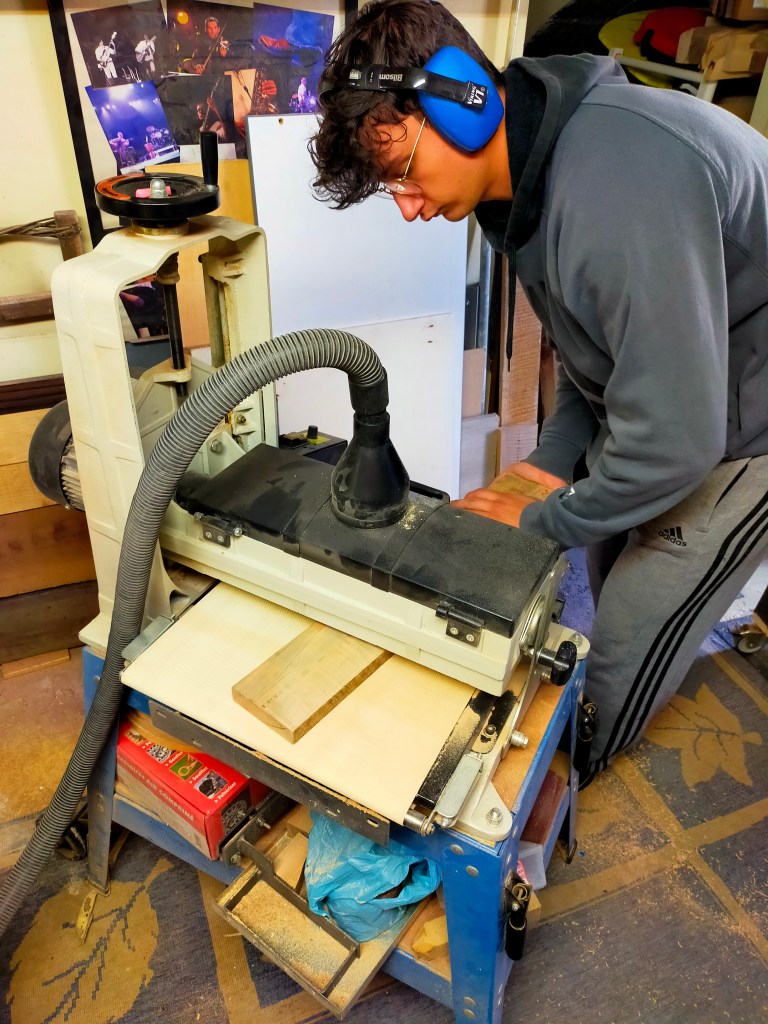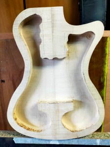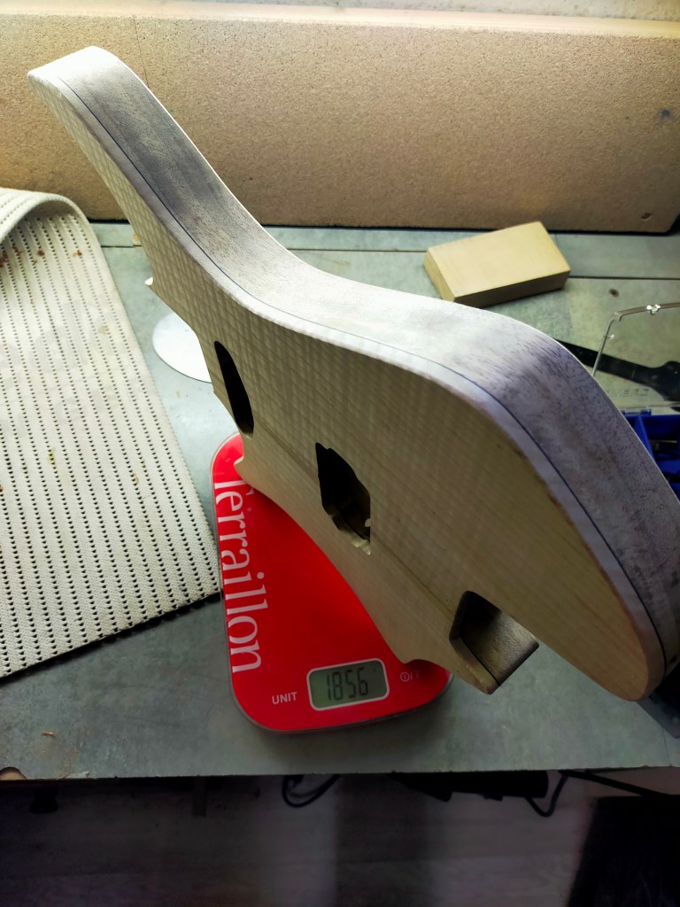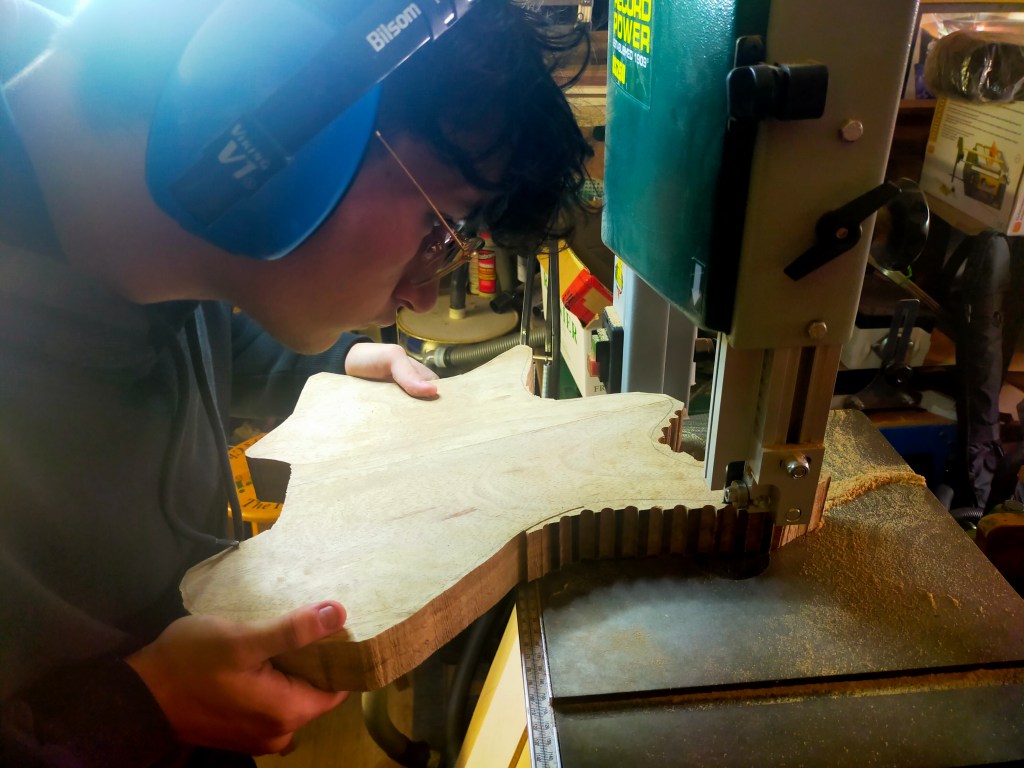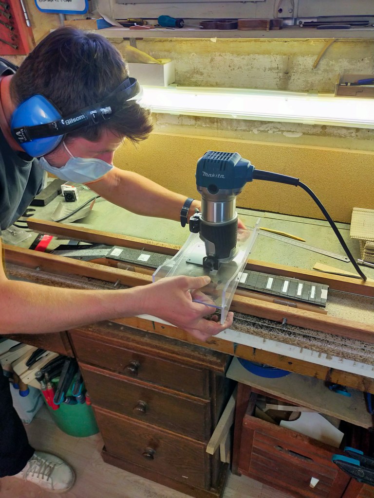 Tom vient se fabriquer une guitare headless en Bubinga, Frêne et Erable.