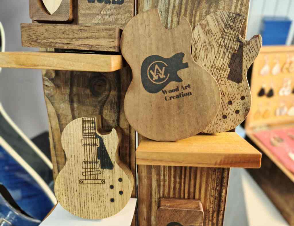 un atelier où le bois prend vie sous forme d’instruments et d’accessoires raffinés.